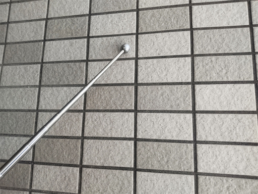 タイルの調査・補修外壁タイルは打診棒でタイルを叩き、音で浮きの発生を調査し適切な補修を行います。