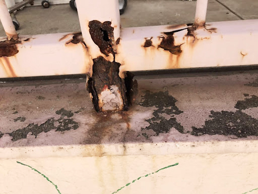 塗料の多くは寿命が約5年程度のウレタン塗料です。鉄部も塗膜の寿命とともに表面を守る機能が低下します。腐食が進行してしまうと交換しか方法が無くなってしまいますので、早めに対策が必要です。